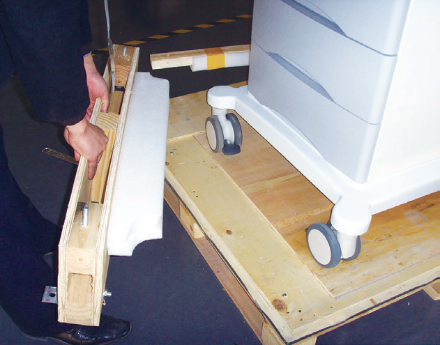 本方案著重解決帶滾輪醫(yī)療設(shè)備的緩沖設(shè)計(jì)以及設(shè)備固定、設(shè)備的防水包裝、設(shè)備快速包裝和配件的組合包裝,利用充氣墊對異形產(chǎn)品的包裝等一系列難題。