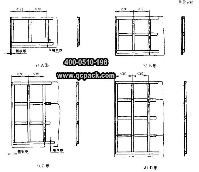 框架木箱的底座也是由滑木、輔助滑木、端木、枕木和底板組成的,其結(jié)構(gòu)與滑木箱基本相同。底座在裝上內(nèi)裝物而未裝側(cè)面和端面時(shí),不能單靠底座進(jìn)行起吊作業(yè),特殊情況需要起吊時(shí),需將底座加固,參照《GB/T 10819-2005 木制底盤(pán)》進(jìn)行。
